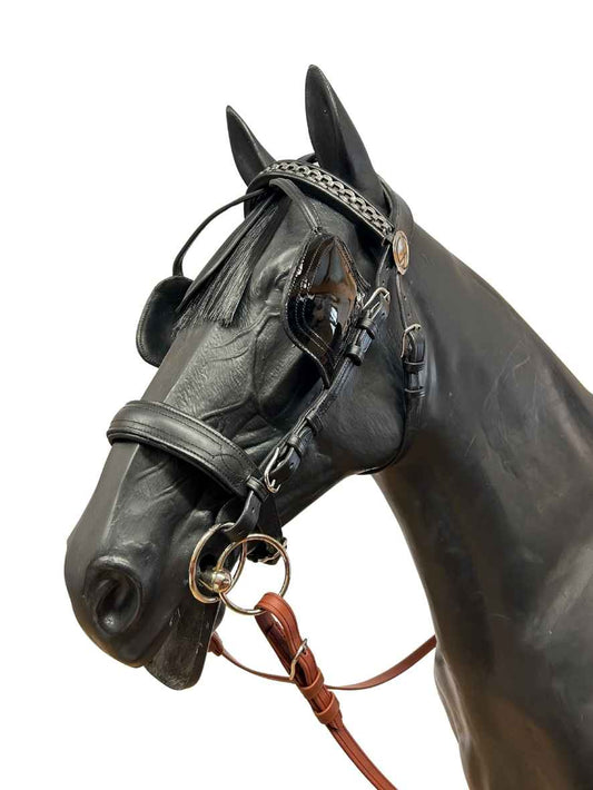 WEISSL einfache Backenstücke mit Scheuklappen Blendklappen Lack LEDER für Fahrzaum (Paar)